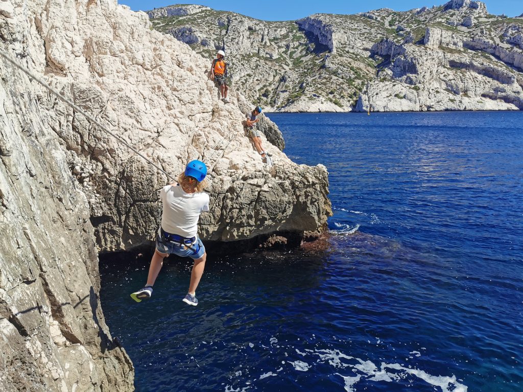 C’est une excellente manière de découvrir l’univers de l’escalade et de la verticalité en douceur, tout en profitant d’un panorama unique sur la mer Méditerranée et les falaises de Sormiou et les îles au large de Marseille.